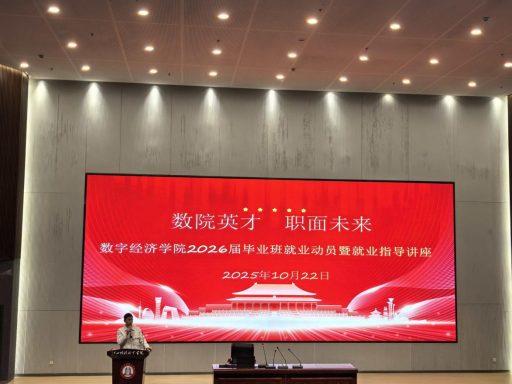 10月22日下午,数字经济学院在一号报告厅开展2026届毕业班就业动员暨就业指导讲座,党总支副书记龚威、全体毕业班班主任及2026届毕业生参会。