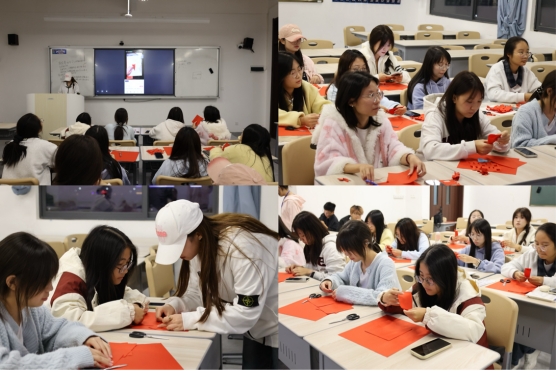 非遗剪纸课上,授课学生导师拆解折剪技巧,指导学员完成创意剪纸作品,让传统技艺在实践中得以传承。
