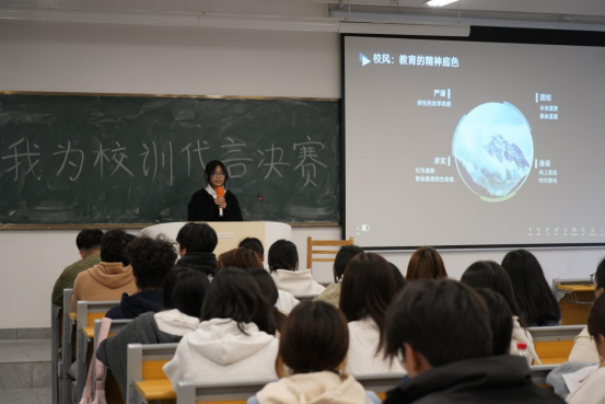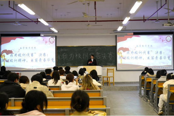 为传承校训精神,凝聚奋进力量,引导学生将青春理想与校训理念同频共振,11月11日下午,数字经济学院在一教433教室举办“践行校训精神,书写青春华章——我为校训代言”演讲比赛。